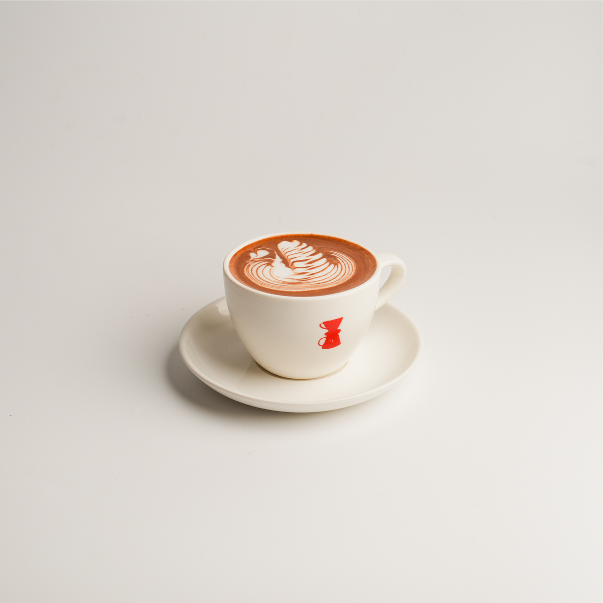 Combination of a double shot espresso. chocolate, & milk in the appropriate ratio
